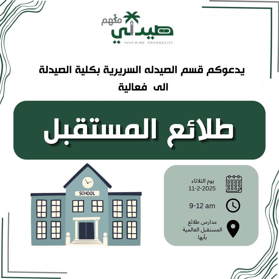 في إطار جهود التوعية بأهمية الصيدلة السريرية، قام قسم الصيدلة السريرية بكلية الصيدلة - جامعة الملك خالد يوم الثلاثاء 11 فبراير 2025 بزيارة إلى مدارس طلائع المستقبل العالمية.